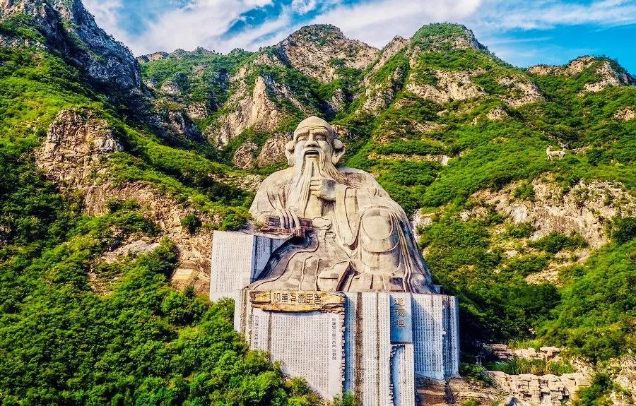 老子塑像。圣莲山始建于唐代,盛于晚清,建庙宇于峭畔,佛道合一,演绎出独特的文化特色。