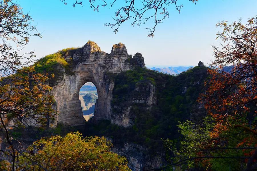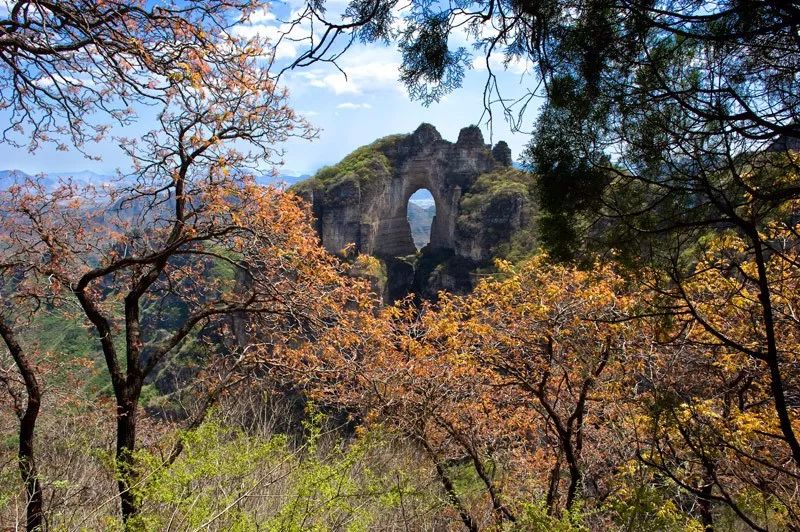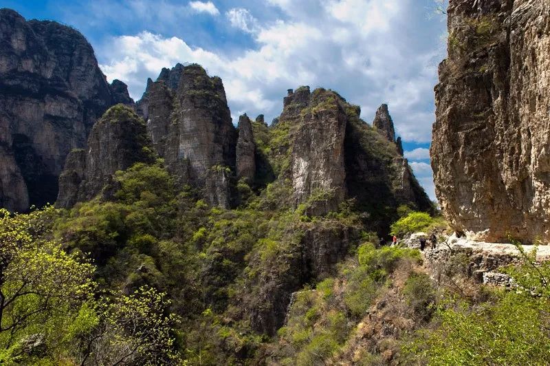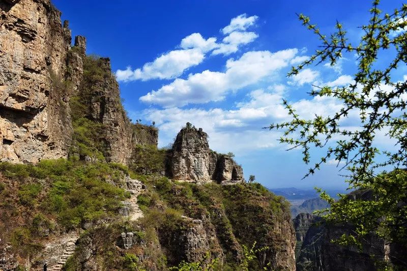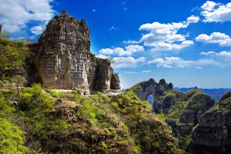 忽行至豁然开朗处,近山如刀削斧凿,令人有感于鬼斧神工;远山与蓝天相接,令人慨叹于烟波浩渺。点将台、鸳鸯树、双龙洞、碑楼院、南天门、蜡烛峰……诸景点一一映入眼帘,待你探幽览胜。