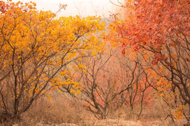 目前,红叶观赏进入了五彩斑斓的阶段,各种颜色交织渐变,一起拉开了秋的序幕。整个山谷一寸一寸染上红色、金色,渐渐把山林悉数渲染。