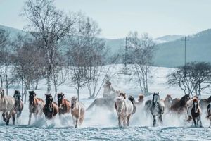 - 『马踏飞雪』前往拍摄雪地狂奔的马群(费用自理),马倌会根据大家的拍摄角度让追赶着马儿奔跑在辽阔的大草原之上。冬季拍摄雪地奔马场面远远好于夏秋季节奔马的场面,逆光和侧逆光拍摄马匹在雪地奔跑,鬃毛、马尾、溅雪、哈气的画面层次动感强烈,气势磅礴。草原最少不了的就是牛羊成群,马儿奔腾,在远处看着马群在皑皑白雪上奔跑,鬃毛、马尾、溅雪、哈气的画面气势磅礴,比夏季在草原看万马奔腾带来的视觉冲击更加强烈。