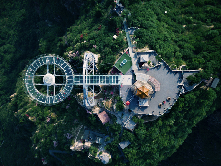 石林峡悬空玻璃“UFO”观景台安全性高,观景台地面采用36毫米防弹玻璃,是由透明防弹胶片将三片高强度玻璃粘接在一起制成的。