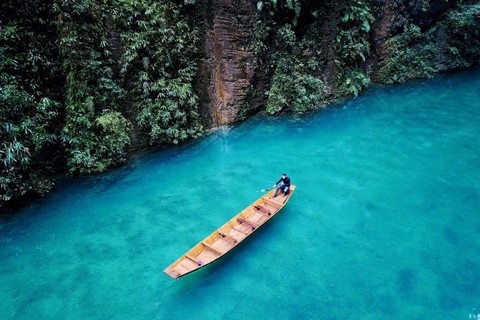我们徒步至峡谷底部,乘坐网红「漂浮小船」之旅,悠闲地荡漾在碧水青山之 中。漫山遍野的映山红,倒影在河面的一艘艘木栈,漂浮在山水一体的清江河面, 水下鱼儿慢悠悠的游过船底,遗世独立的样子。快,抖音视频、朋友圈走起来!