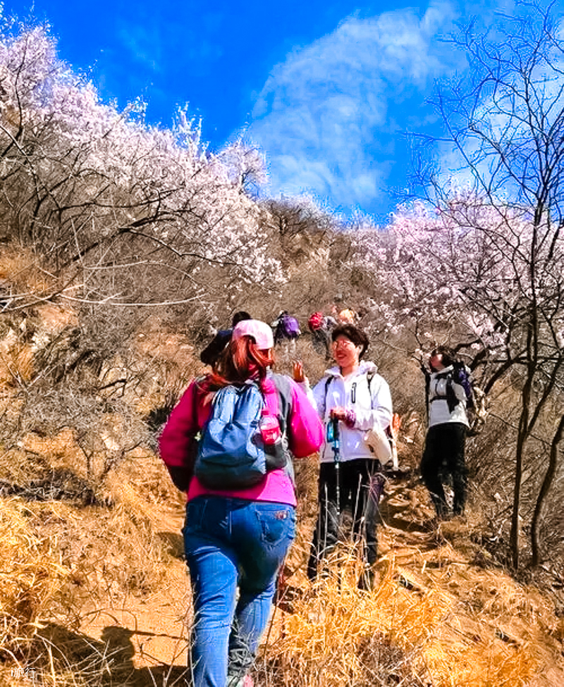 桃花栈位于河北涞水县虎过庄岭--砂锅顶--南翻峪一带,其中最高峰为砂锅顶,海拔800米。全程爬升不大,体力消耗不强,春天漫山谷野桃花、杏花,香飘四溢,为户外徒步增加无穷乐趣。