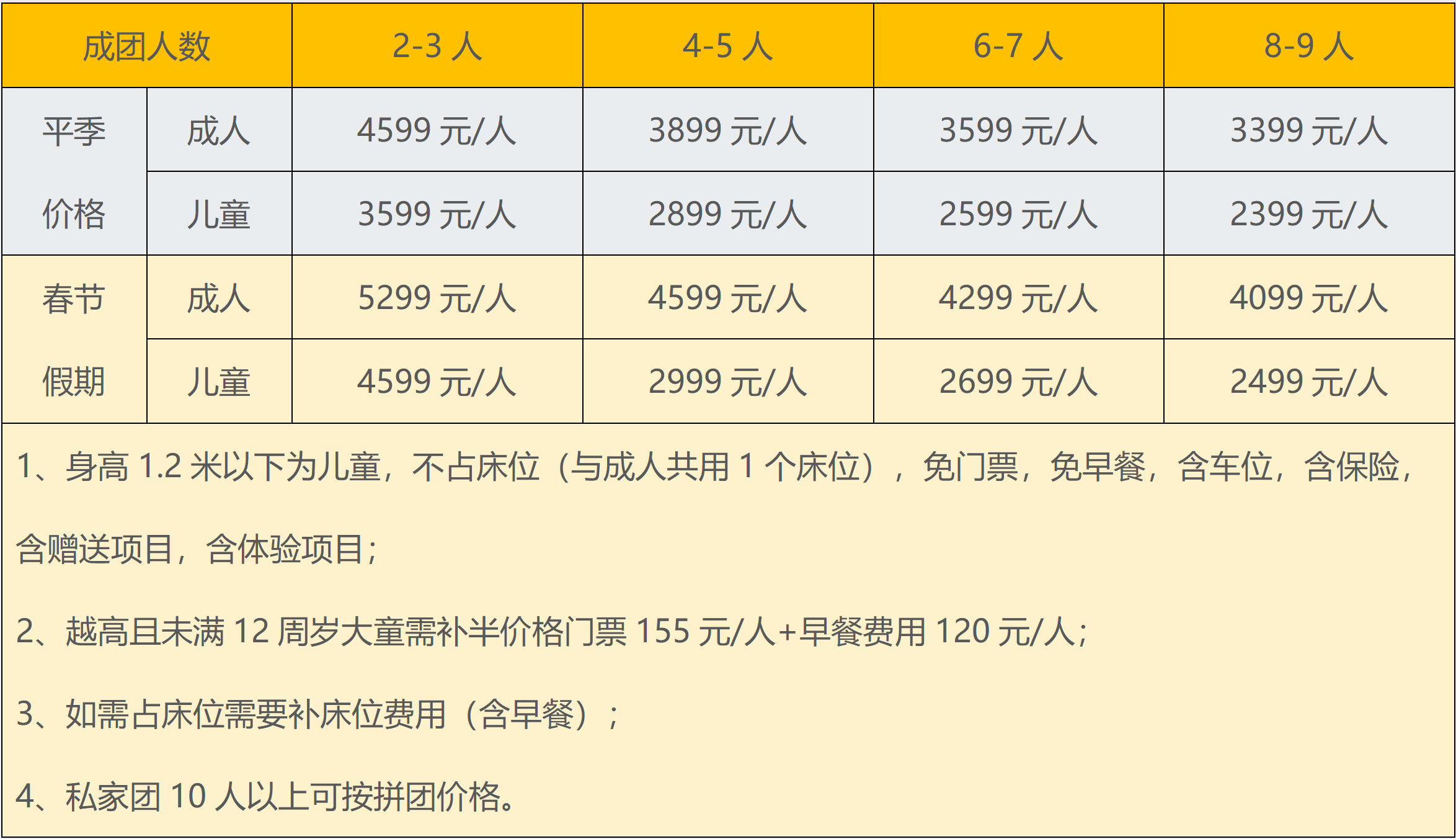▷身高1.2米以为儿童,不占床位(与成人共用1个床位),免门票,免早餐,含车位,含保险,含赠送项目,含体验项目;
