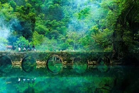 早餐后前往荔波小七孔景区,游览贵州的“九寨沟”。听卧龙潭的飞瀑咆哮,拍明星同款美照;泛舟穿行水上森林迷宫鸳鸯湖,体验小七孔的精华;接着游玩68级跌水瀑布,置身绿色青山间;奇遇翠谷瀑布,感受大自然的鬼斧神工;驻足小七孔桥,享受惬意的午后时光。