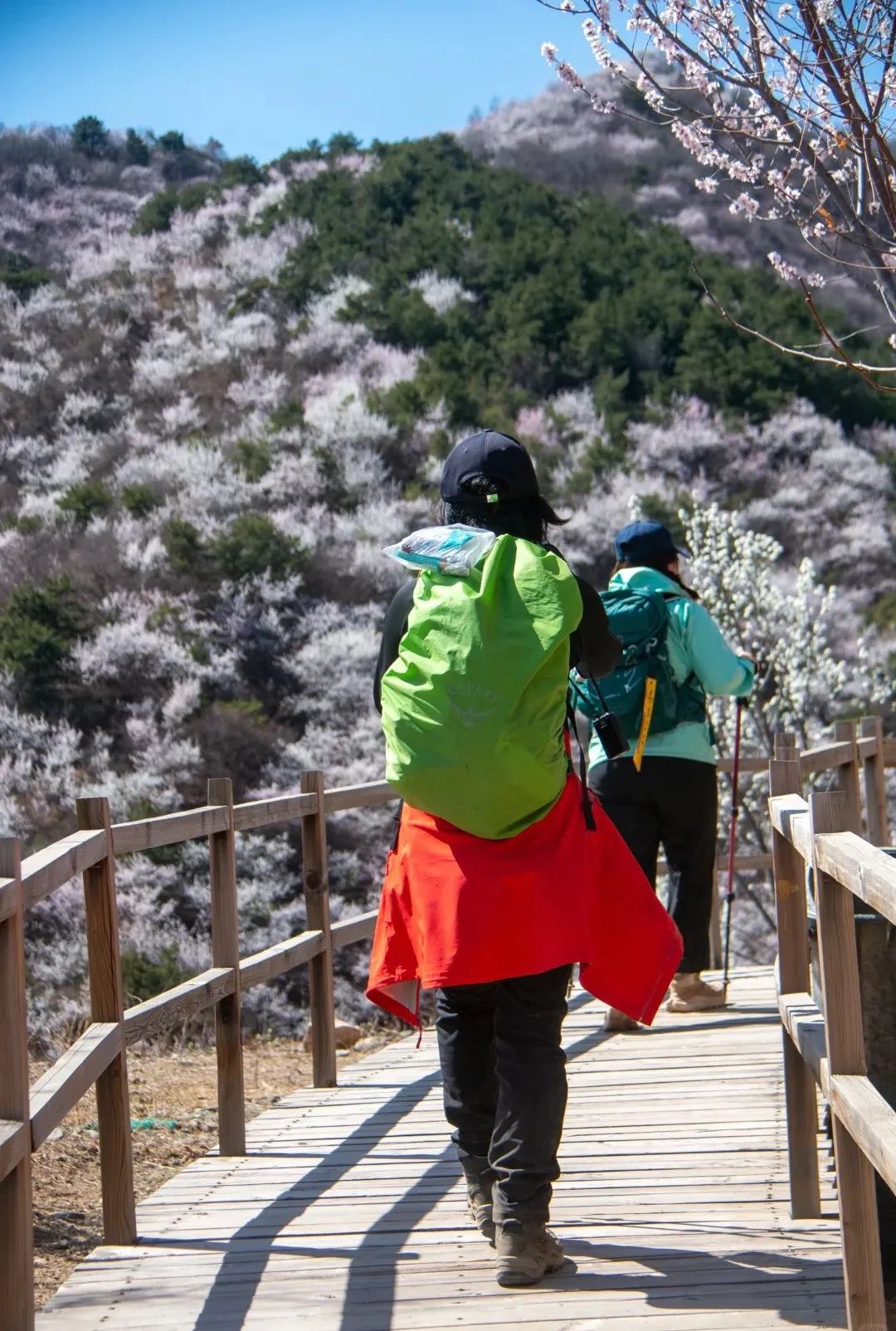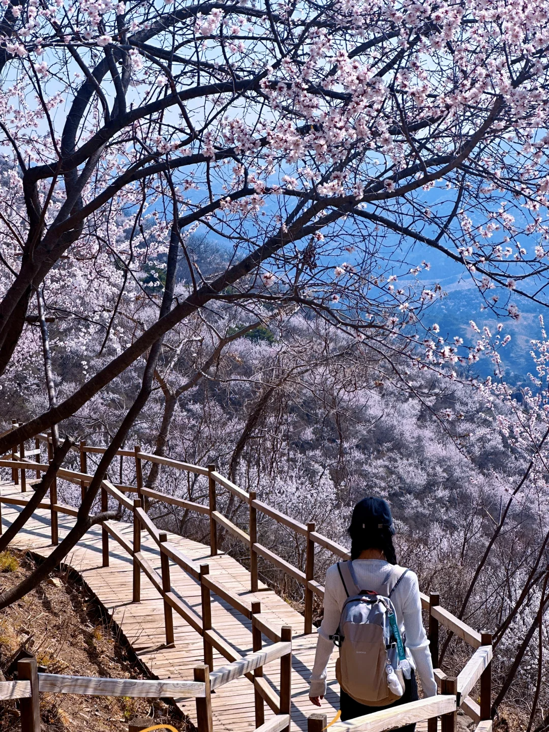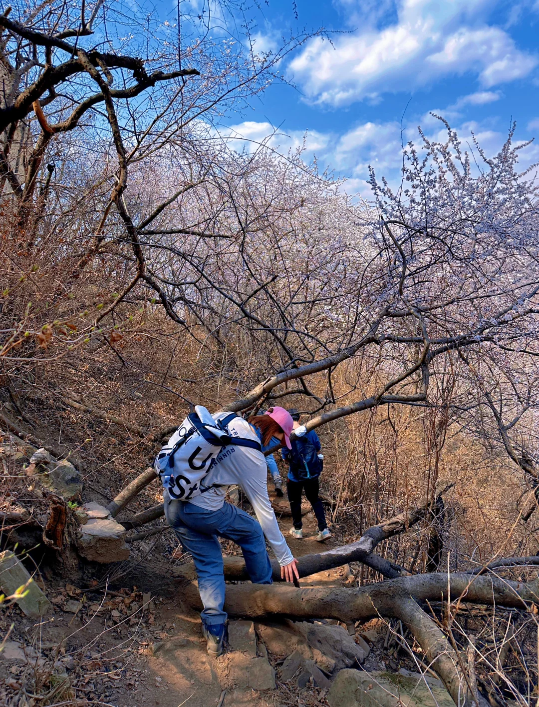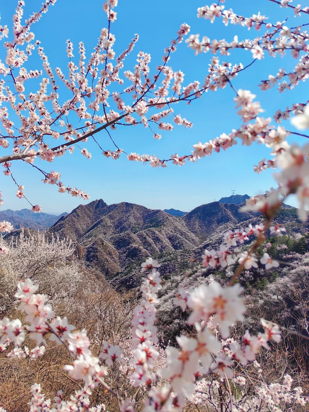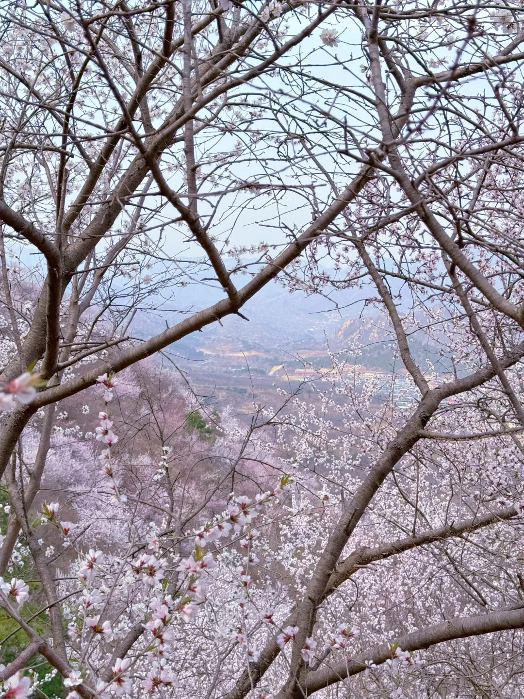 望宝川至东水峪环线,是一条贯穿燕山腹地原始峡谷的十公里徒步路线。线路以北京市昌平区望宝川村为起点,途经明代古长城遗迹、野生桃花谷、丹霞地貌区,最终抵达东水峪古村落遗址并折返,形成一条海拔攀升约四百米的环线。抵达首个观景台,可俯瞰山谷初现的粉色花海。路径沿溪涧蜿蜒,两侧丹霞地貌赤壁耸立,与野生桃林形成强烈色彩对比。春季两侧山桃、山杏夹道,三月初至四月初为最佳花期。