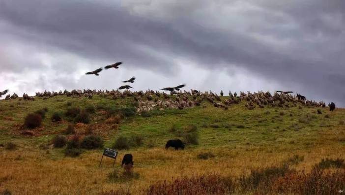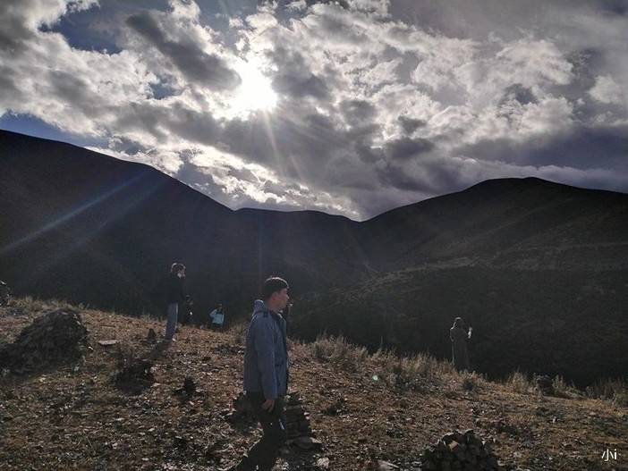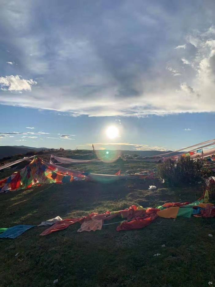 天葬台又称尸陀林 ,距离色达县城十几公里,位于五明佛学院背面的半山腰上,是色达举行天葬的地方。大巴只能停到半山腰,可选择坐班车上去,也可以步行十几分钟上去,此时,海拔也直逼4000米,高海拔加上爬升,不得不开启老年遛弯模式,走上几步便会想大口喘气,走着走着突然就听到“嘭”的一生闷响,吓了一跳,环顾一周空旷的一周,没什么东西发出响声,这时同行的伙伴提醒,是从我的背包中发出来,这才醒悟应该是背包里的薯片爆了
