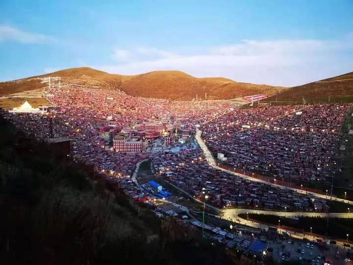 从正门到色达山脚有公交,节假日人居多,排队要半小时以上,选择徒步上山,大约半小时到一小时,徒步到佛学院山顶,站在那里聆听山间的阵阵梵音,静静的等候着日落的降临。也可以在佛学院拍摄夜景,此时浮现在你眼前的只有“震撼”两个字。拍完夜景后返回色达县城