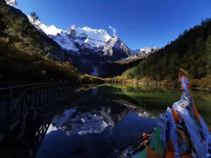 线路1:景区观光车—扎灌崩—徒步—冲古寺—电瓶车—络绒牛场—骑马—牛奶海—徒步—五色海;