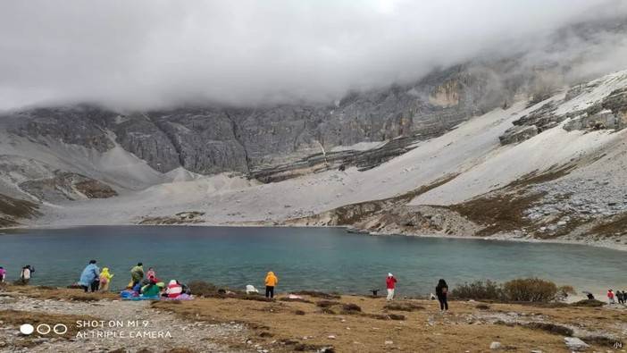 到达牛奶海与五色海的分叉口,建议先去牛奶海,然后有路可以拐到五色海,直接攀登去五色海会很累,传说中能“返演历史,预测未来”的五色海,在阳光的照射下,五光十色。然鹅当天天气不太好,五色海看起来大打折扣,