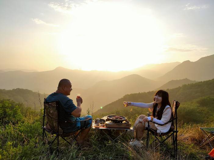 各路大厨各显身手,只带了嘴的童鞋负责悠闲地的消灭掉美食,配点小啤酒,美滋滋。夜晚降临后还有几位摄影大咖专门扎营在山头只为拍那璀璨银河以及日出,