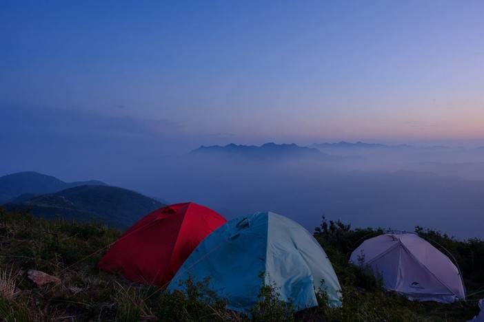 夜幕降临山里开始升起了雾气,空气变得潮湿,气温讲的很低,很庆幸带了冲锋衣,吃饱喝足简单洗漱了一下,便钻进帐篷碎觉喽,明早五点还要早起看日出,早晨四点便被一阵很有节拍的呼噜声震醒了,一看才三点多,继续又眯了一会,直到四点半很多人都醒了过来,天已大亮,营地又开始热闹了起来,再也没有了睡意,便起床收拾下,早晨的雾气还是蛮重的,是否能看到日出还要拼一拼人品值