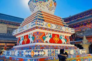 15:00 游览【罗睺寺】(无门票,参观30分钟左右)五台山因释迦摩尼出家前唯一子嗣命名的黄庙,观藏经楼观开花现佛奇景,药师殿礼消灾延寿药师佛,为父母祈求健康长寿。罗睺寺为五台山台怀八大庙之一,始建于唐代,至今天王殿门口一对石狮雕刻圆润丰满,肌体雄健,相传为唐朝遗物。寺内东南角有一座用砖石所建的文殊塔,据说宋代张商英来罗睺寺曾屡次在夜里院中古树上看见过佛灯闪烁。后来古树不明原因枯死,寺内僧人用树干雕刻文殊法像供于文殊殿内,树枝及树根焚烧成灰建塔供养,便是此塔。