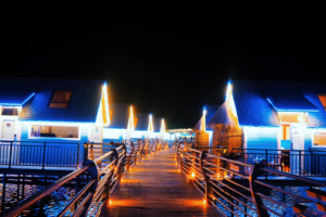 - 晚上|月坨岛晚餐,可前往荷兰小镇餐厅品尝月坨岛的时令海鲜烧烤大排档(自理或AA);酒足饭饱以后,重头戏来了,悠闲漫步于木屋群,多彩木屋与灯光、水光倒影相得益彰,夜色迷人......大家可以数星星、打牌、喝小啤酒聊人生,今夜注定无眠……
