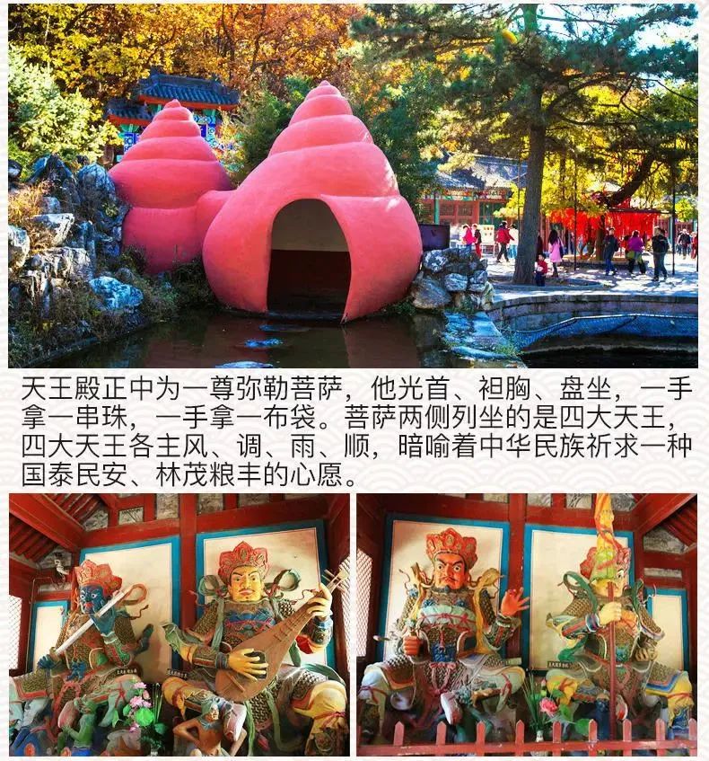 【经典常规线路】山门-天王殿—大雄宝殿—三圣殿—走观音路到茶亭—观音寺—红叶林—岭上长廊—观景台—走健康路下山—五百罗汉—青龙山关景区。