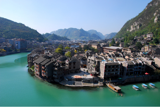 镇远古镇位于贵州省黔东南苗族侗族自治州镇远县,是国家 AAAAA 级旅游景区、中国历史文化名城,素有“滇楚锁钥、黔东门户之称”。这 里集山水风光、历史文化、民族风情于一体,被誉为“东方威尼斯”和“人类疲惫心灵的最后家园”。舞阳河以“S”形穿城而过,北岸为府城, 南岸为卫城,远观如太极,山水城浑然一体。