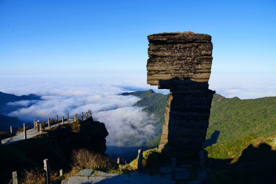 梵净山,位于贵州省铜仁市江口、印江、松桃三县交界处,是武陵山脉主峰,海拔 2572 米 1 2 3 5 7。作为中国南方最早从海洋抬升为陆地的区域 之一,其地质历史可追溯至 14 亿年前,山顶仍保留着原始洪荒的地质奇观。这里保存了亚热带原生生态系统,繁衍着 7100 多种野生动植物,是 全球濒危物种金丝猴的唯一栖息地 ,并拥有世界上同纬度最大的珙桐林 。 梵净山不仅是自然瑰宝,也是文化圣地。其佛教历史始于唐代,鼎盛于明代,明万历年间《敇赐碑》誉其为“天下众名岳之宗”。标志性景观 包括红云金顶、蘑菇石、万卷经书等,云瀑、佛光等天象奇观更添神秘色彩。2018 年,梵净山被列入世界自然遗产名录,并拥有国家 5A 级旅游 景区、世界生物圈保护区等多项国际与国家级荣誉。
