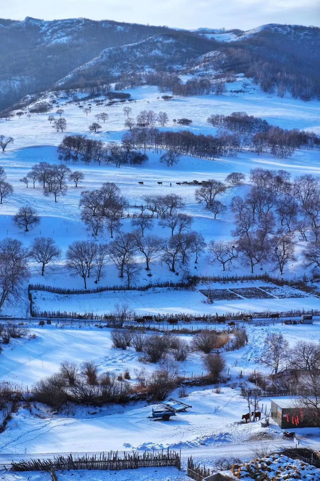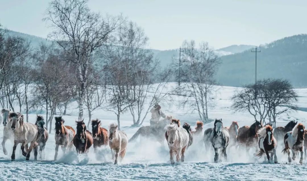 冬季,雪原莽莽,气象万千,诗意无尽!层林尽染的松树,潺潺流淌的小溪,袅袅升起的炊烟,恬淡宁静,雪极之姿从这里开始;雪地上奔跑骏马,让你在这个冰雪世界远离城市的喧闹,体会草原冬天的温度。