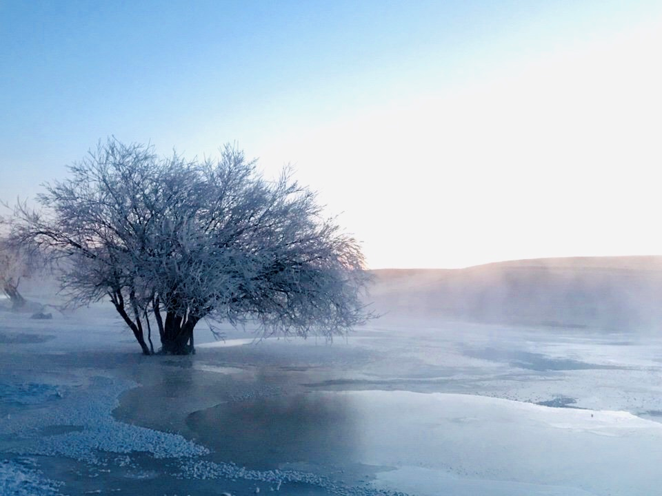 - 上午|早餐后前往乌兰布统的小河口欣赏树挂(也叫雾凇)在低温的大地结晶,这就是美丽的冰花,大量的冰花落在树上,牧场的护栏上,电线上,美景从此出现。这就是大家期待的雾凇(雾凇视受天气影响较大,不一定能看到,如当天没有我们换其它地方玩耍)。