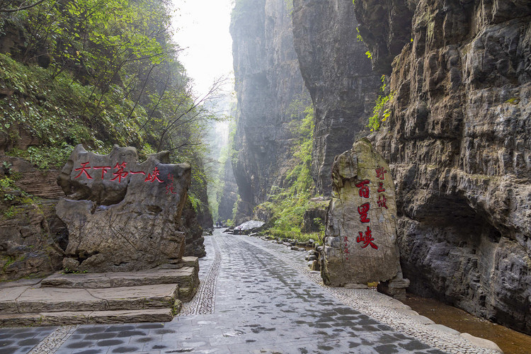 游在其中,头顶绝壁万仞、蓝天一线;脚踏鹅卵石甬路,还可足疗保健;路边泉水叮咚、碧水清潭;身旁高山飞瀑、涧流潺潺;崖壁上灌木成林、青檀倒挂悬,独叶草、野海棠和羊齿兰犹如墨彩涂于壁间,密如绿毯。是每个到野三坡旅游的人都会去的地方,百里峡也曾经作为央视版《三国演义》、《赤壁》、《寻秦记》、《萧十一郎》等众多影视剧的外景拍摄地。