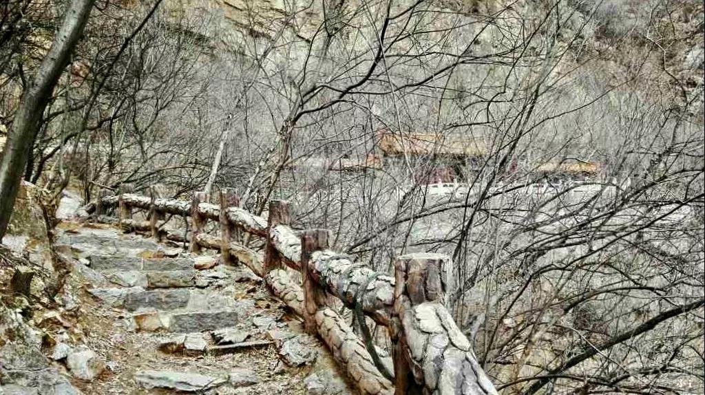 穿过一个废弃采石场车可开到有一排房子的山谷尽头,沿人工步道上去就是重建的天泉寺;另外,从上苇甸村东沿明显翻山小路也可到达滴水岩,但山脊东侧下山小路很陡需倍加小心。