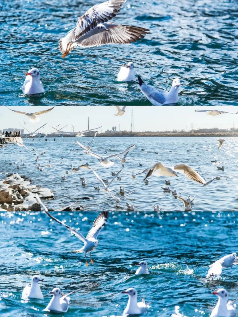 每年冬季,大批来自俄罗斯远东地区的海鸥会飞越 6000 多公里抵达天津,在天津的海边和河岸上翩翩起舞,形成了一道美丽的风景线。