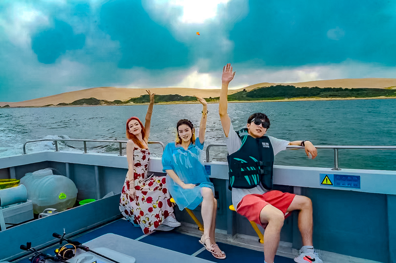 观赏大美翡翠岛:乘坐渔田专属航线,迎着海风感受翡翠岛近距离观光点,翡翠岛被誉为大海与沙漠的吻痕。感受大海与沙漠奇妙结合所带来的绝美景观,半岛三面环海享有“京东大沙漠”的美誉。