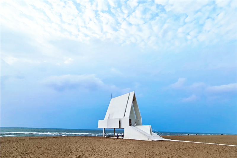 在这里,可观千米沙海,赏十里海景。这里是文化艺术空间,远离五光十色的繁华声色的人群,选一处浓荫秘境,一杯茶、一本书、一片海为这片海赋予更多艺术魅力与人文情怀。