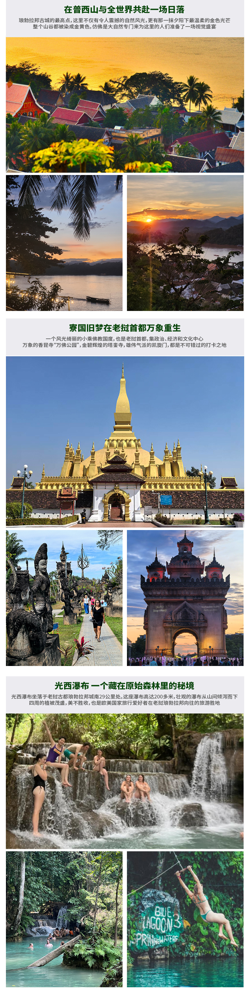 3、光西瀑布和普西山有很多叉路,切记听从导游安排,防止迷路,贵重物品请随身保管好。