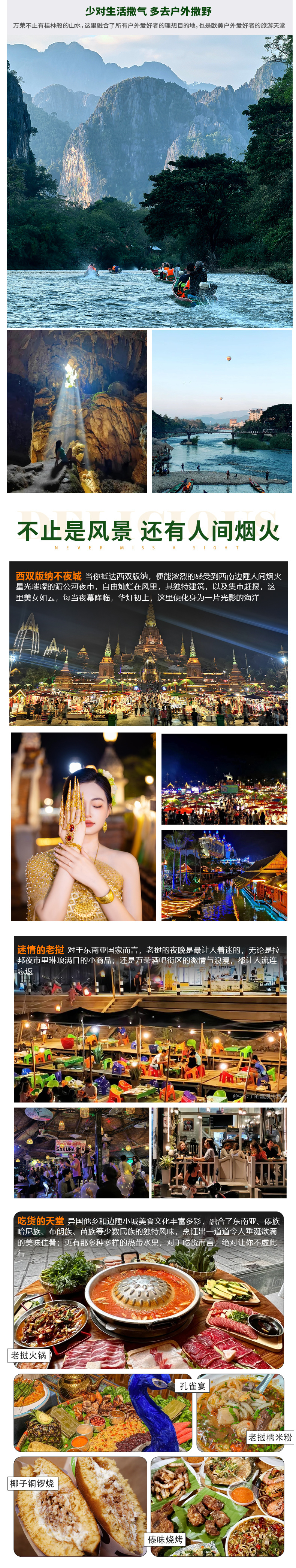 西双版纳→琅勃拉邦接站→入住酒店→湄公河游船→法国街夜市