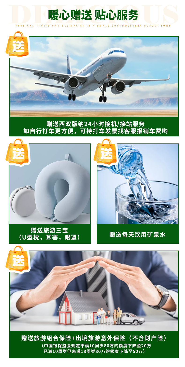 1、赠送西双版纳24小时接送机/接送站服务,PS:如自行打车更方便,可持打车发票找客服报销车费哟;