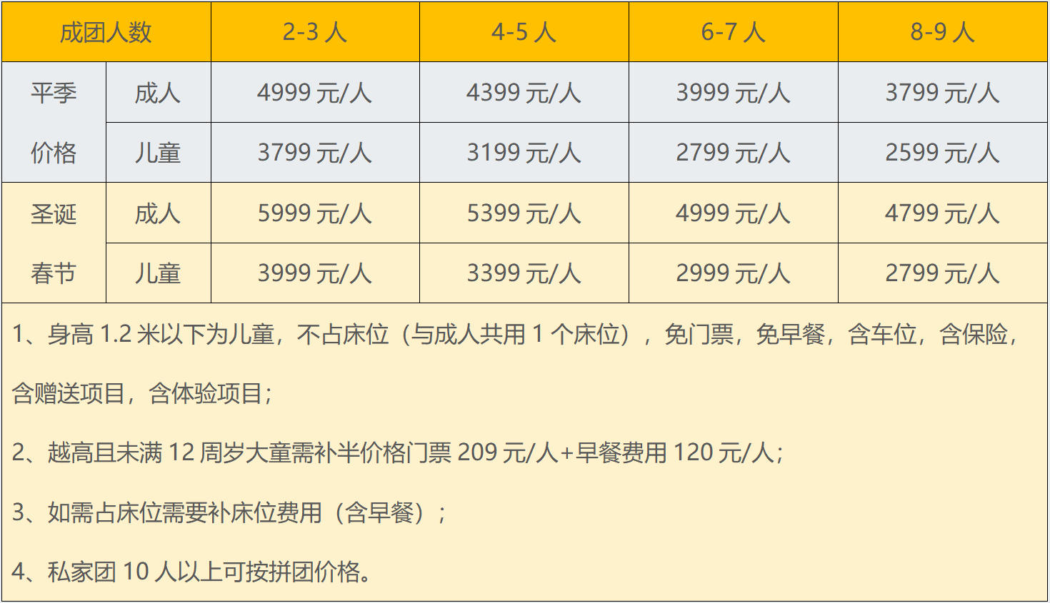成人:3699元/人,儿童:2499元/人