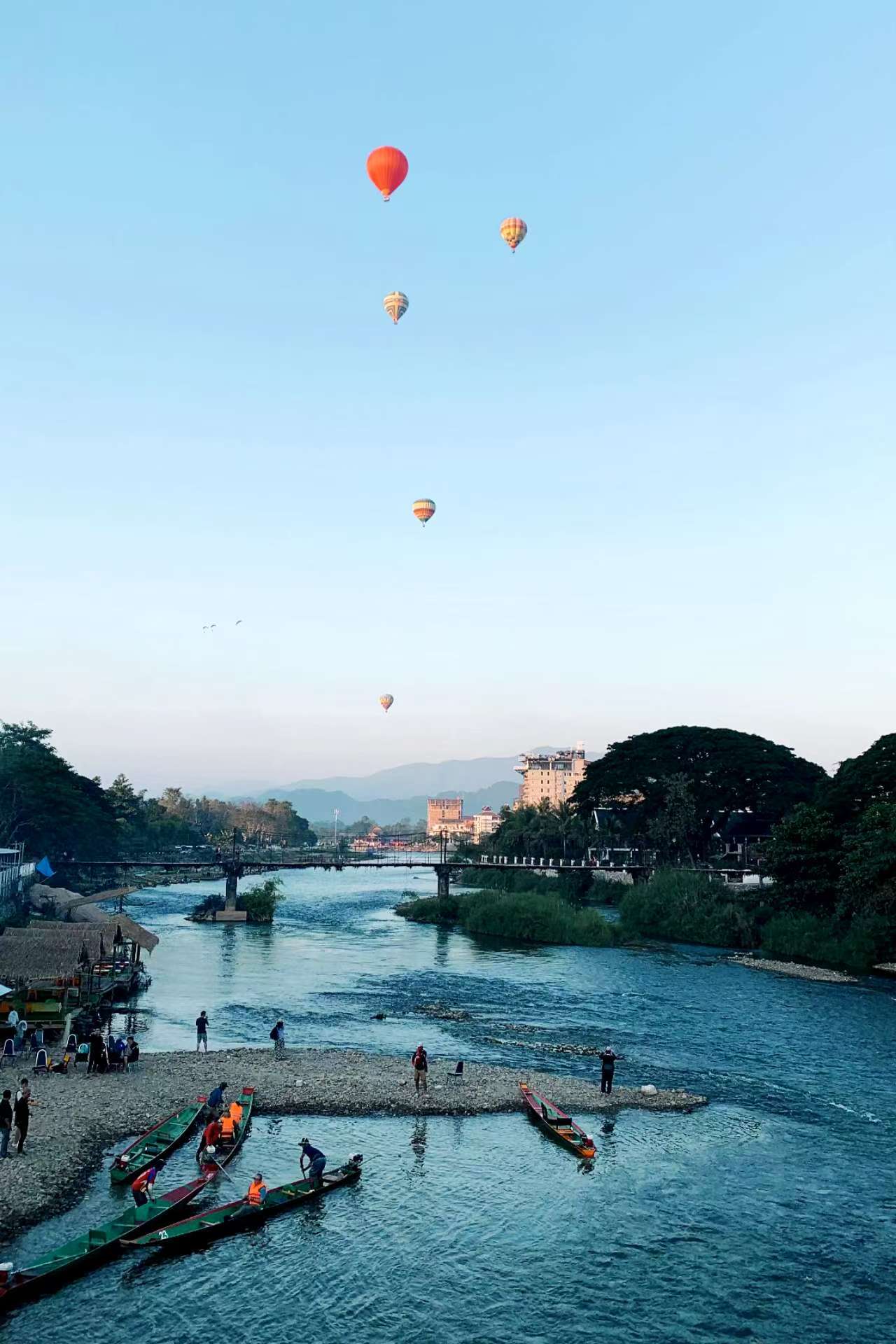 早餐后前往南松河体验【长尾船游】,素有“小桂林”美称的南松河,两岸风景优美,一副青山隐隐,云雾缭绕的世外桃源。长尾船是万荣的特色,狭长的船身,尾部高高翘起,像一只骄傲的水鸟。船夫熟练地操纵着方向在河面上划出一道优美的弧线。两岸是连绵的青山,郁郁葱葱的树木间,偶尔能看到几座古朴的吊脚楼和简易小桥,是非常不错的体验。随后【漫步南松河畔】,如果很喜欢户外运动的你,在时间允许的情况下,也可以体验一下空中飞人的感觉,这里的热气球和滑翔动力伞也是相当不错的体验哟,享受一下在空中俯瞰整个万荣的桂林般的山水田园风光。