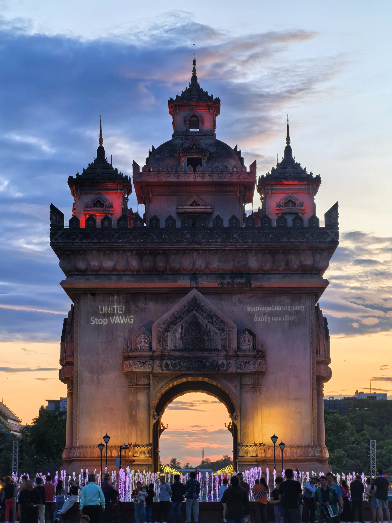 游览完塔銮寺前往老挝的心脏【凯旋门】,其以巴黎凯旋门为灵感,却披上独特的澜沧王国华裳。60米高的建筑糅合老挝佛教塔銮花纹与神话浮雕,顶部五座佛塔式尖顶直指苍穹,是战争胜利的纪念碑,更是东西方文明对话的史诗,随后我们前往万象酒店入住休息。
