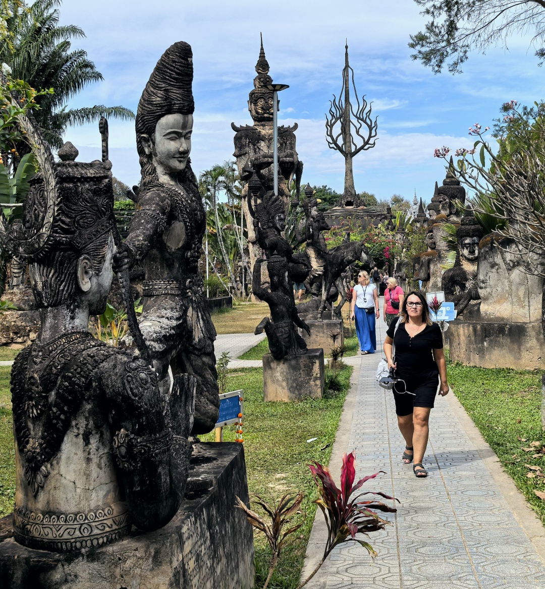 早餐后前往【香昆寺万佛公园】,它是一个虽称其为寺庙,却没有大殿,没有僧人,第一次踏入老挝这片土地,便被它各种形状的佛像给震撼了。它颠覆了人们心中对于佛像的认知,有些面目狰狞有些尖齿獠牙。不到香昆寺,枉来老挝游”——这座神灵的露天剧场,以最荒诞的姿态诠释最深邃的轮回。