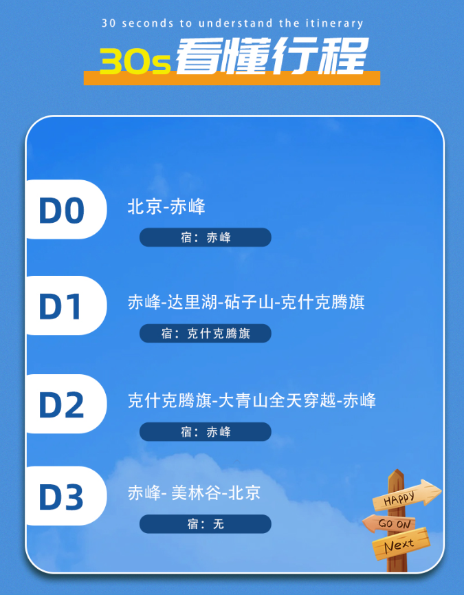 - 下午徒步结束后,集合回京,约18:30抵达北京,结束三天徒步之旅!