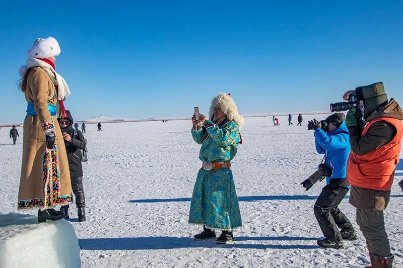 - 早餐后集合出发前往达里湖景区,达里湖封冻期可达5个月(11月下旬至次年4月),湖冰最厚超2米,湖面冰裂巨响源于昼夜温差引发的冰体膨胀挤压,而呈现梦幻蓝色的物理成因是冰晶对470纳米波长光波的极致散射。此处为高盐碱苏打型湖泊,冰点可达-5℃仍不封实,冬季渔猎沿用契丹族传世的"镩冰矛鱼"技法,现已成为中国冰泡湖观测的基准坐标。