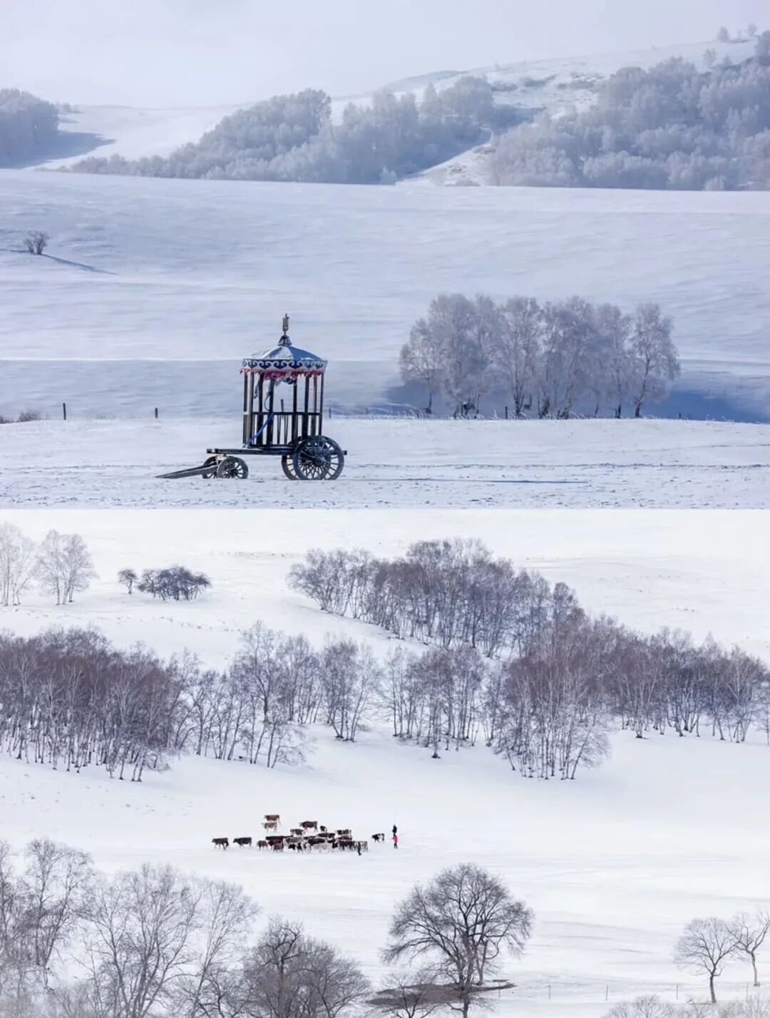 「 塞北雪乡 」不输北海道!酷似魔界!超小众冬季旅行地!塞北雪乡,抬眼望连绵不尽的小山峦,行走在一望无际的雪原,静谧、广阔、唯美,在这里,时间静静流淌,我们自由自在。山岭连绵,树木分布有序。早晚时分,马群和骆驼群穿越雪地,构成独特景观。