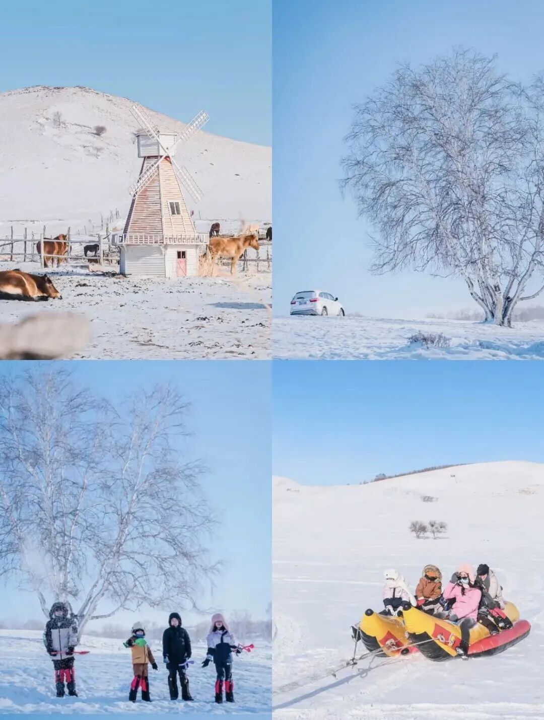 4)冰雪娱乐,堆雪人,打雪仗,雪地拔河,老少皆宜!