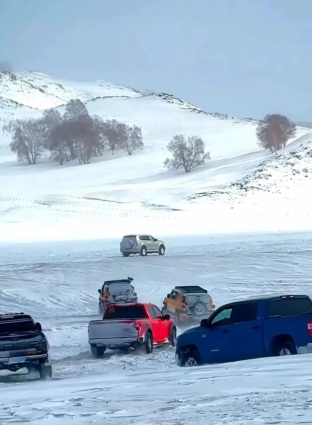 在无垠雪原上挥洒豪情离开河谷,视野豁然开朗。透风沟是一片开阔的丘陵地带,厚厚的积雪覆盖了所有起伏,大地只剩下最简洁、最纯粹的线条。在这里,越野车才能尽情释放它的野性,在无人打扰的雪原上压出第一道车辙,驶过一个个被积雪温柔覆盖的草垛,冲向山梁之巅,俯瞰这片被寒风雕刻出的、浩瀚无边的白色王国。