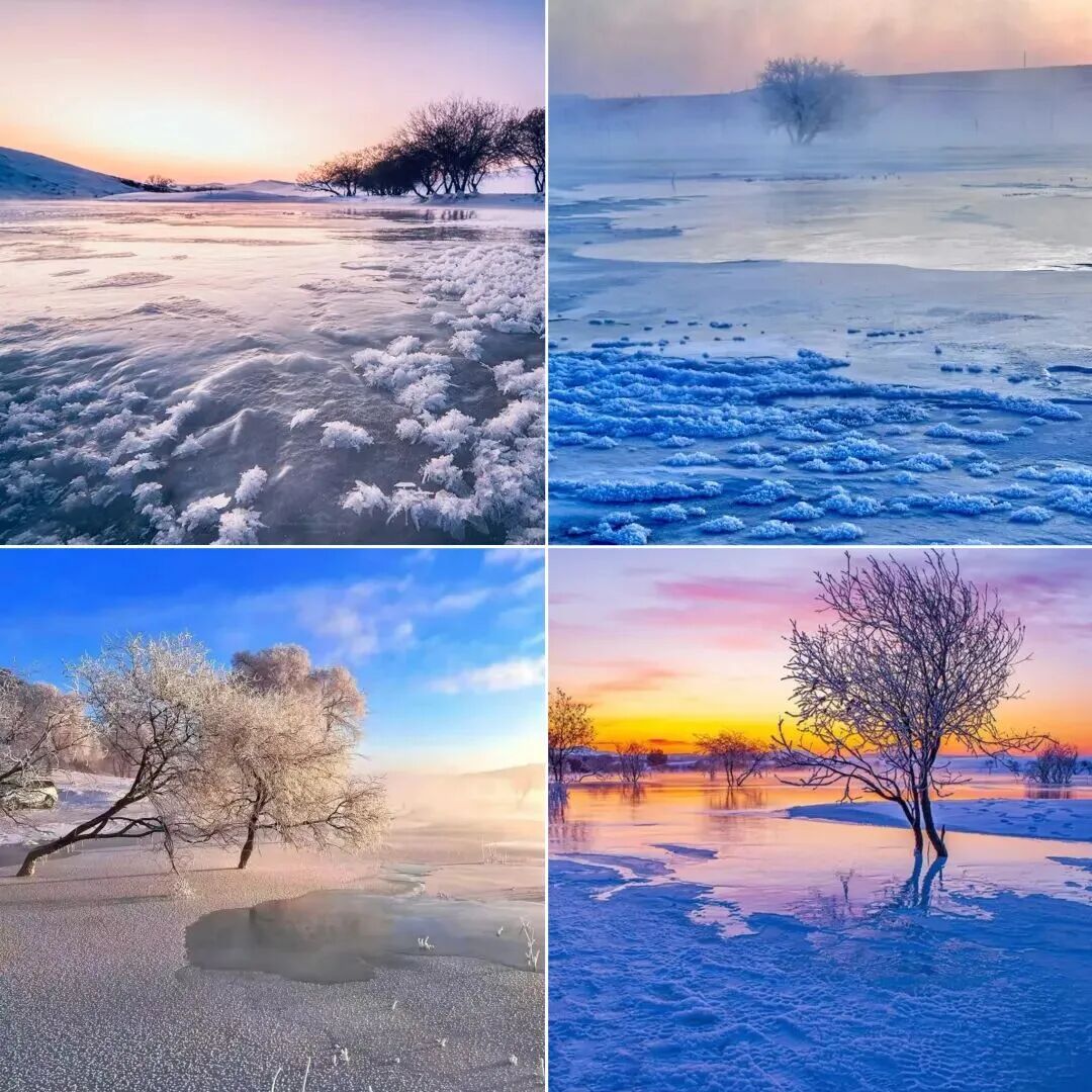 「 暖水河 」冬季的暖水河盘踞在辽阔草原之上,千里冰封的草原腾起漫天迷雾,向世界炫耀着它的高贵。河水热气腾,与周围的冰雪形成鲜明的对比,河面上的雾气落在两岸的树枝上会形成雾松景观,非常美丽。这里有神奇精致的草原树挂,这里有神圣缥缈的草原晨雾,足以满足你的镜头!当你身临其境时你会不由自主的感慨,此景只应天上有,人间能得几回闻!人间仙境期待着进入你的镜头。即使在冬季,暖水河依然流淌。