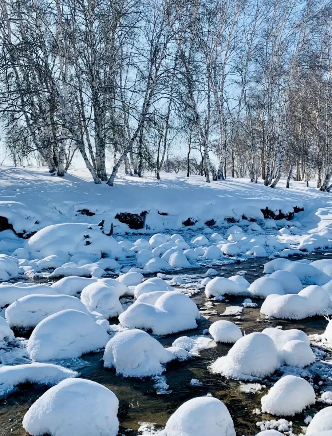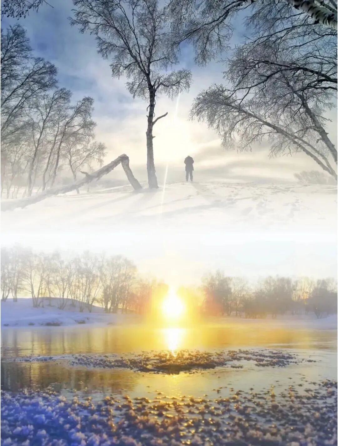 「 南井 」在这片银白的世界里,一切都变得宁静,仿佛能听到雪花飘落的声音。一望无际的雪原,成片的雾松。炊烟渺渺的原始牧村,每一缕炊烟都是与大自然对话的密语~每一根树枝,每一片草叶,都被冰晶装点,仿佛时间在这里凝固,带来了一种静谧之美。