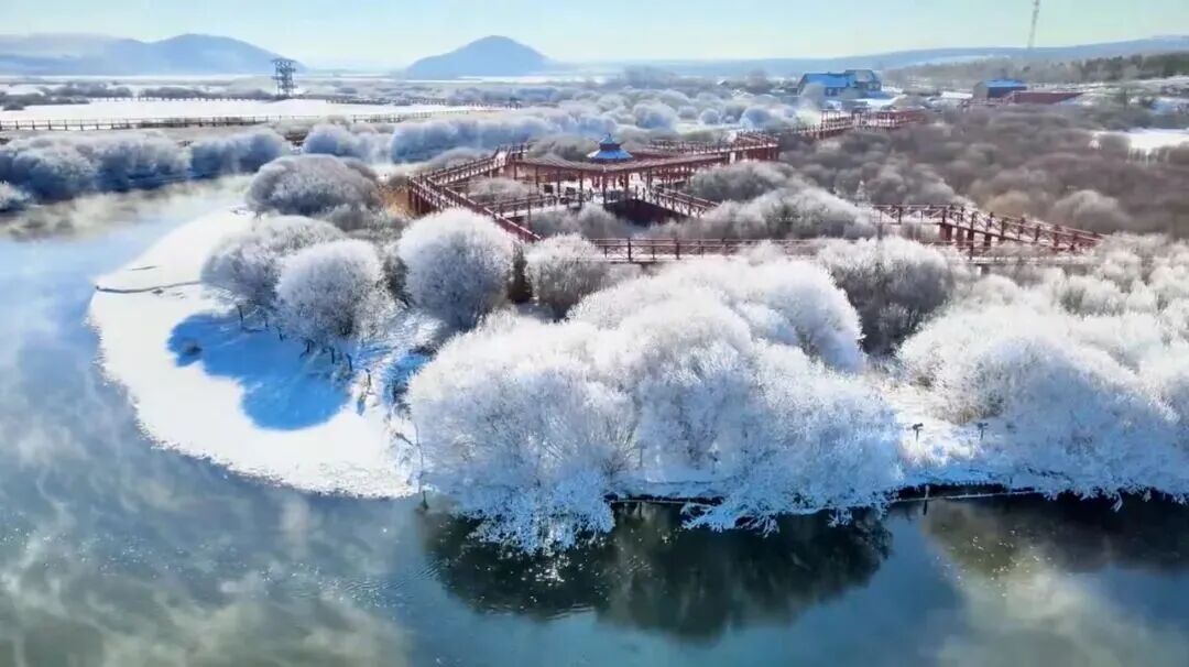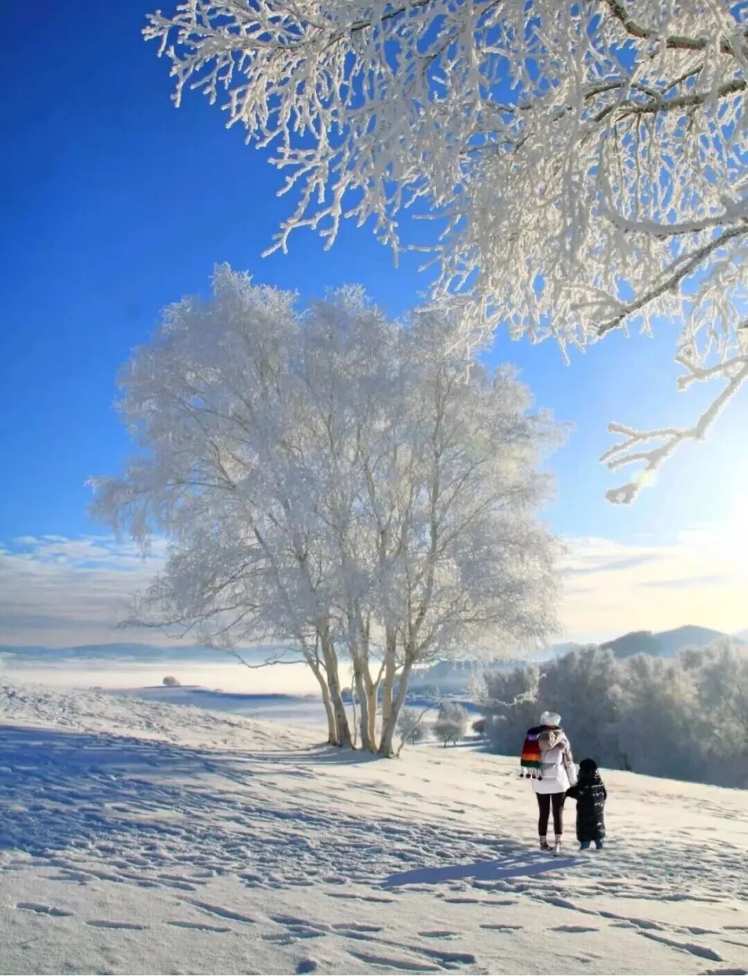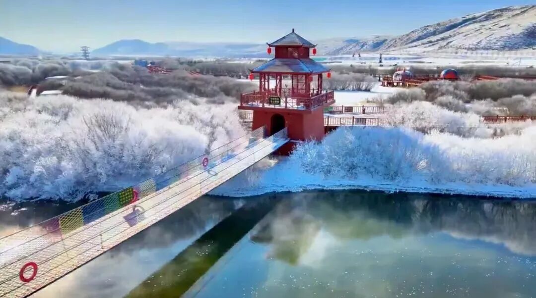 - 上午|早餐后我们换乘越野车前往乌兰布统的小河口欣赏树挂(也叫雾凇)在低温的大地结晶,这就是美丽的冰花,大量的冰花落在树上,牧场的护栏上,电线上,美景从此出现。这就是大家期待的雾凇(雾凇视受天气影响较大,不一定能看到,如当天没有我们换其它地方玩耍)。