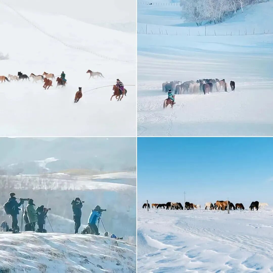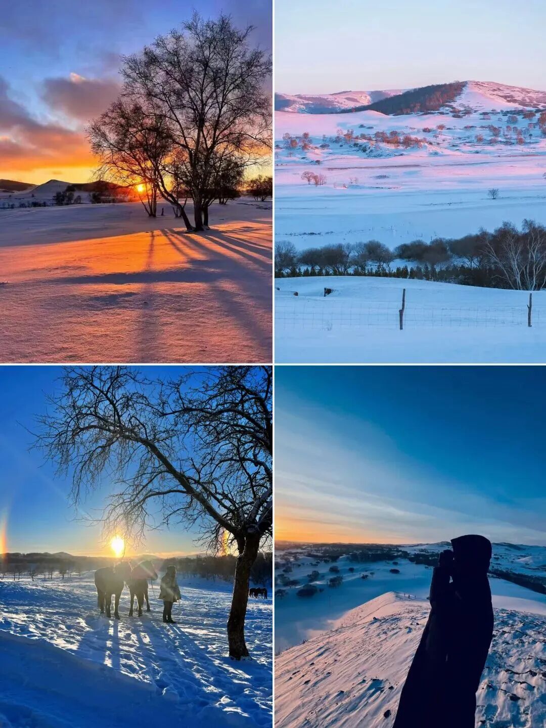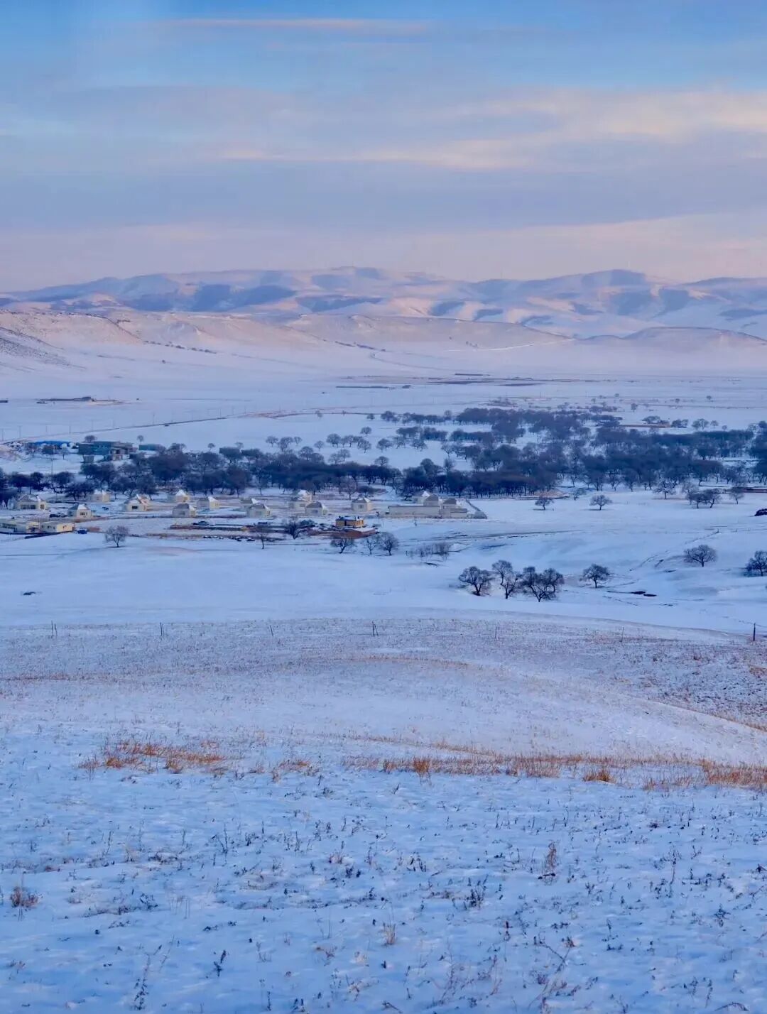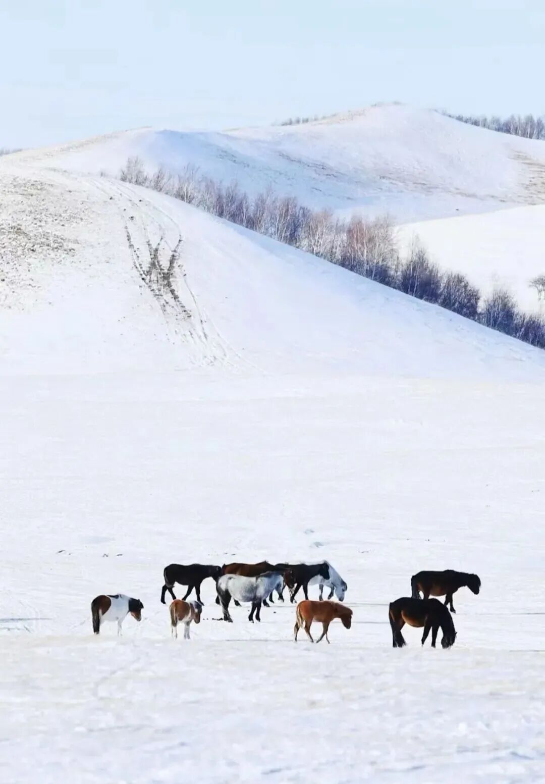 「 塞北雪乡 」此处不输北海道,超小众冬季必打卡地!抬眼望去连绵不尽的小山峦,行走在一望无际的雪原,静谧、广阔、唯美,在这里,时间静静流淌,山岭连绵,树木分布有序。早晚时分,马群和骆驼群穿越雪地,构成独特景观。