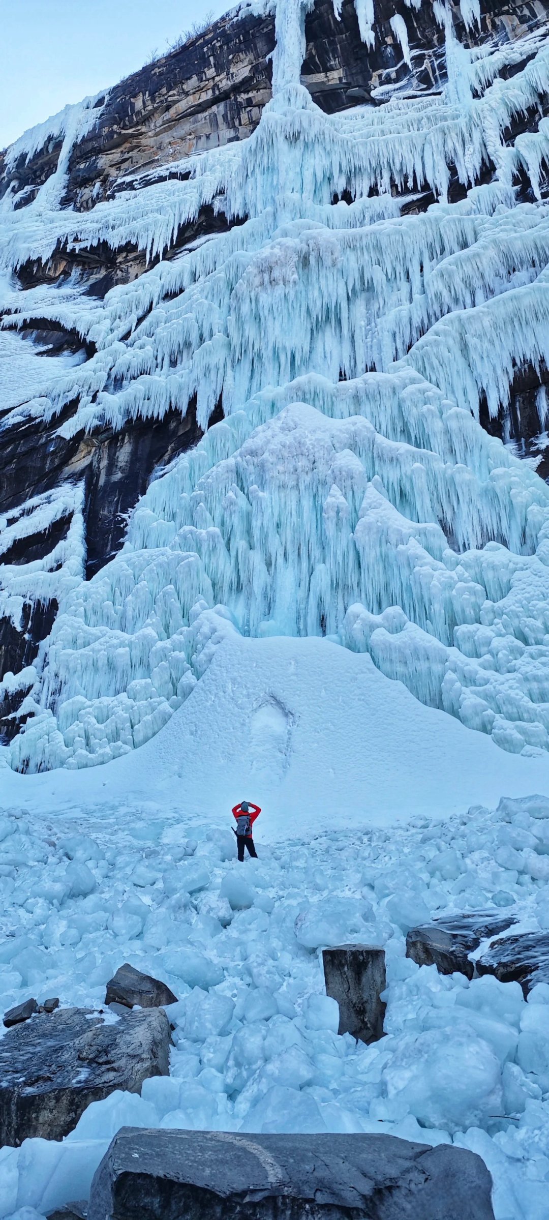 天仙瀑作为经典的户外路线打卡地,依然是户外爱好者们尤其喜爱的地方,此时的冬季,冰瀑盛景犹如大型的冰雪王国一般,让我们感受得到这大自然的魅力。