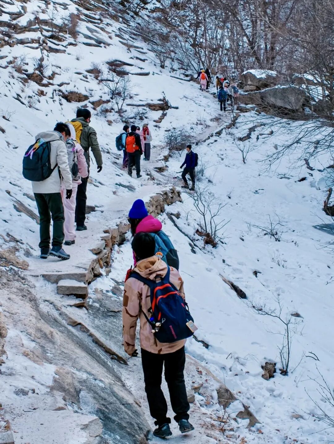 户外徒步线路(非休闲):云蒙山~豪宅~天仙瀑~黄土梁穿越,全程约18公里穿越,累计爬升约1000米,户外强度1.2属中级强度;适合有一定户外经验的人群参加(20-50周岁),正常体力约徒步约8小时。(冰爪必备)