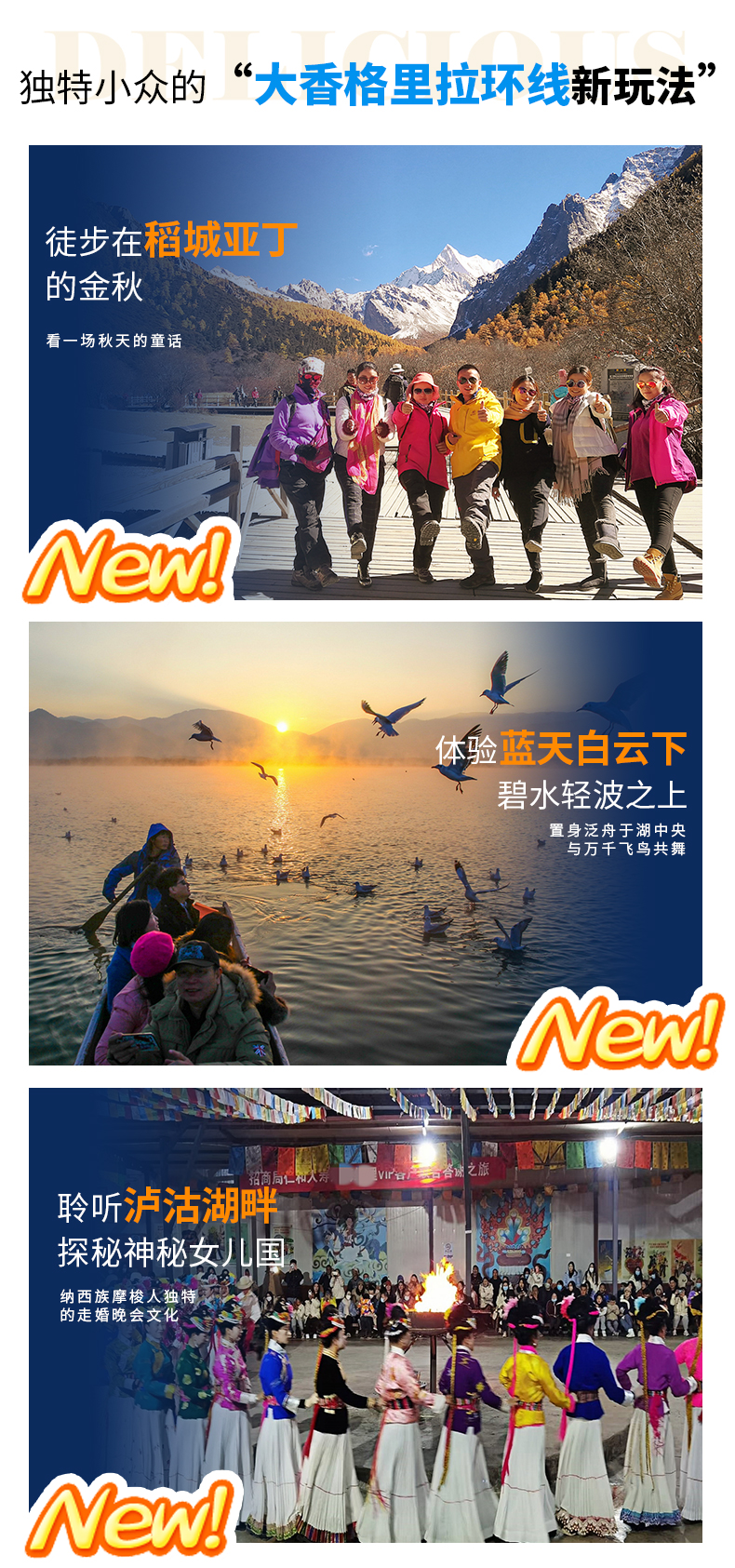 ▷交通:不包含各地到达丽江集散的往返大交通费用(如:机票和高铁火车票等,提前预定通常折扣都会很低);