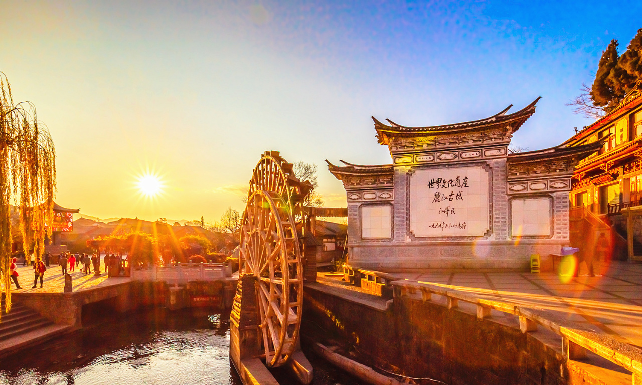 2、其二为【束河古镇】,是茶马古道上保存完好的重要集镇,距今已有1300多年历史,以其古朴的建筑、清澈的泉水和深厚的文化底蕴闻名,核心景区为四方街,青龙桥,飞花触水,九鼎龙潭等景点,酒店打车7Km;