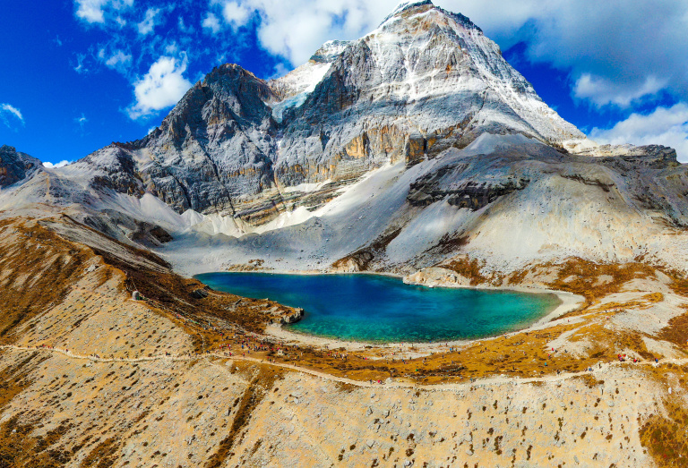 从洛绒牛场徙步约3小时抵达圣湖【牛奶海】,往返约10公里,湛蓝色的牛奶海形同蓝色地球的眼泪点缀于雪山群峰中,从牛奶海的右侧再上行约一百米,便到达此次徙步的最高点【五色海】,五色海在阳光的折射下呈现出五彩斑澜的奇幻景象,据说心诚的人,可以在这里看到自己的未来。