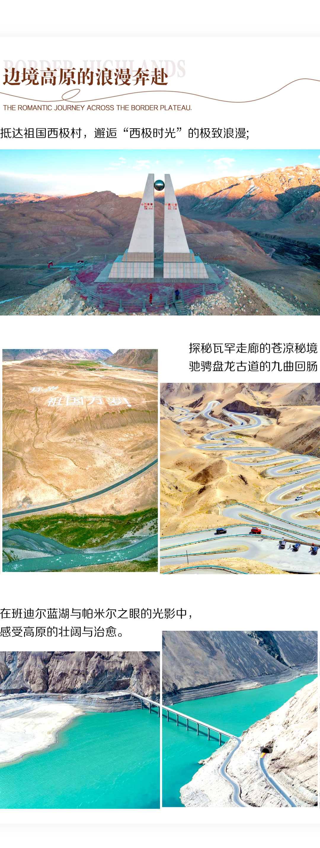 2. 因班迪尔蓝湖及帕米尔之眼地处盘龙古道出口处,如不穿越盘龙古道,则这两景点也无法正常游览,敬请谅解。